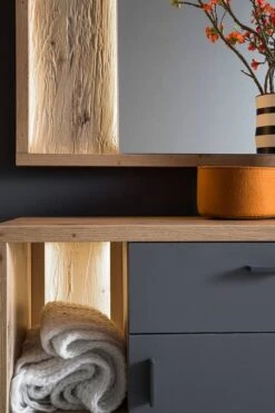 - Contenu de la livraison : Ensemble d’entrée comprenant 1 porte-manteau mural, 1 banc d’entrée, 1 miroir et 1 meuble d’entrée, sans éclairage ni accessoires